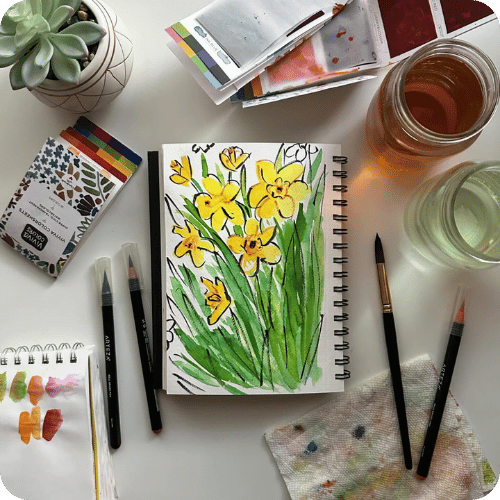 "I am not the greatest watercolor artist, but I have tried many different pallettes, and I started with the watercolor sheets from Viviva and I fell in love with the way they react with the paper and with each other! Totally pleased….my favorite palettes to use for all of my watercolor projects."