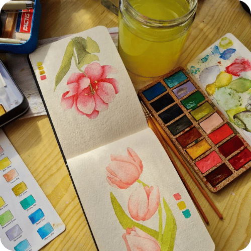 "When I started to swatch these paints I was in awe with the vibrancy. They mix beautifully on paper and lift really easily. The texture is creamy. Painting florals with these has been like a match made in heaven. I highly recommend."